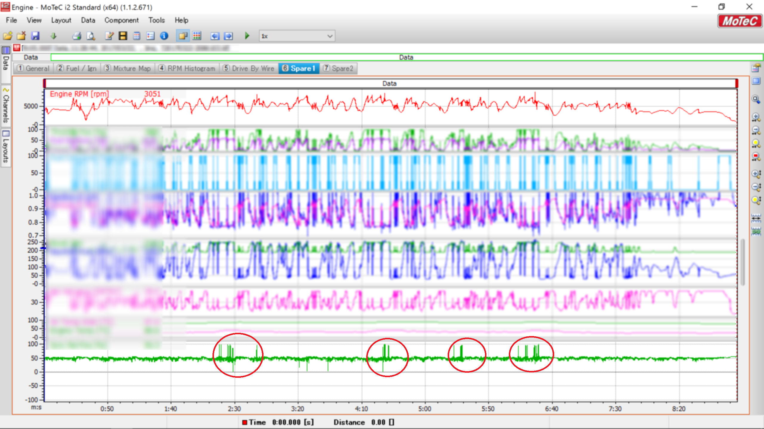 MoTeCですと、通信速度や処理も速いので、ロガーにシッカリ出てきますので、原因の特定が楽です。
