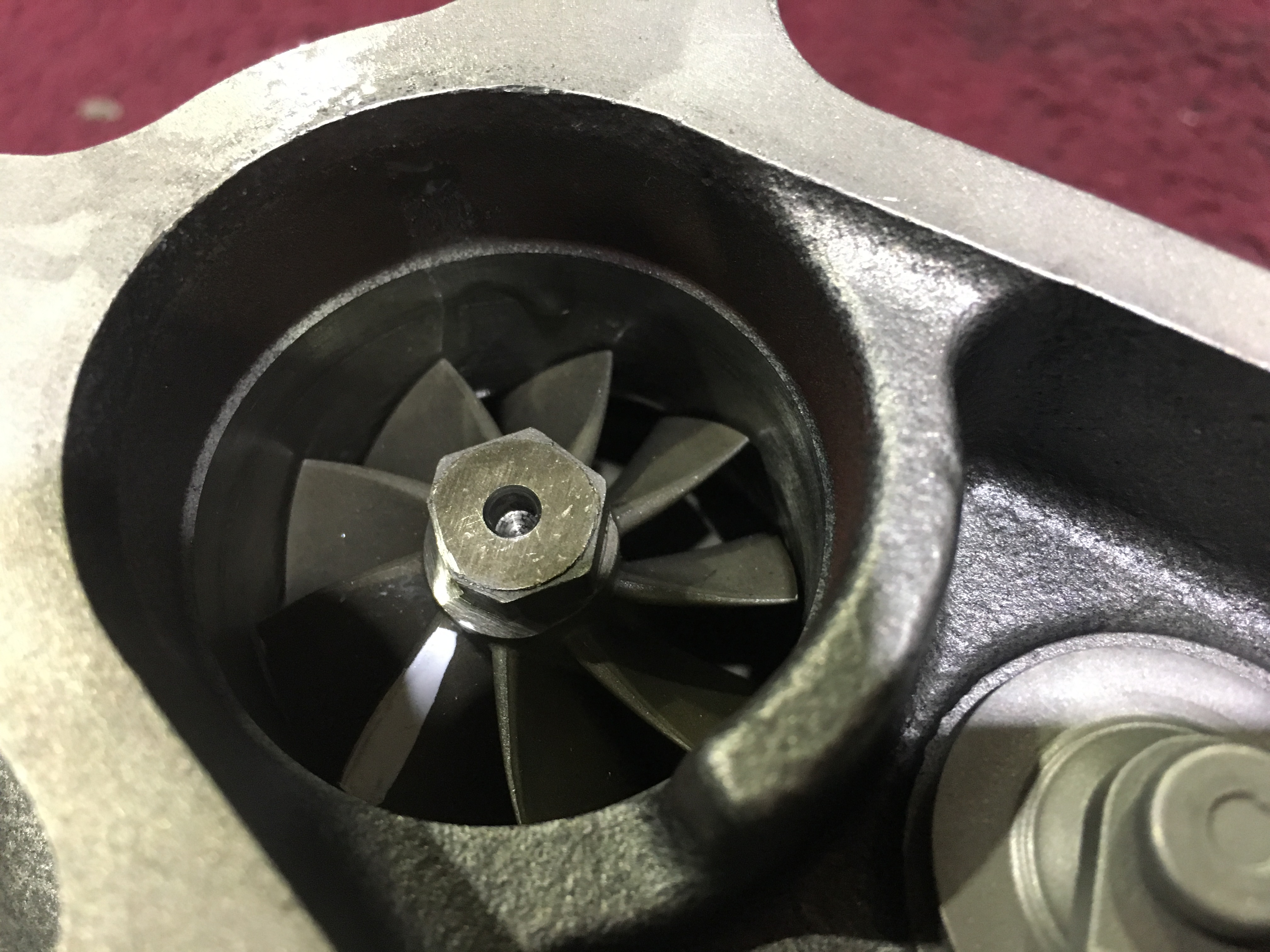 R34純正タービンを普通にO/Hするのも勿体無いし、セラミックホイールの危険性を保持したままドキドキするよりは、安全確保と言う事でメタルのホイールに変更。