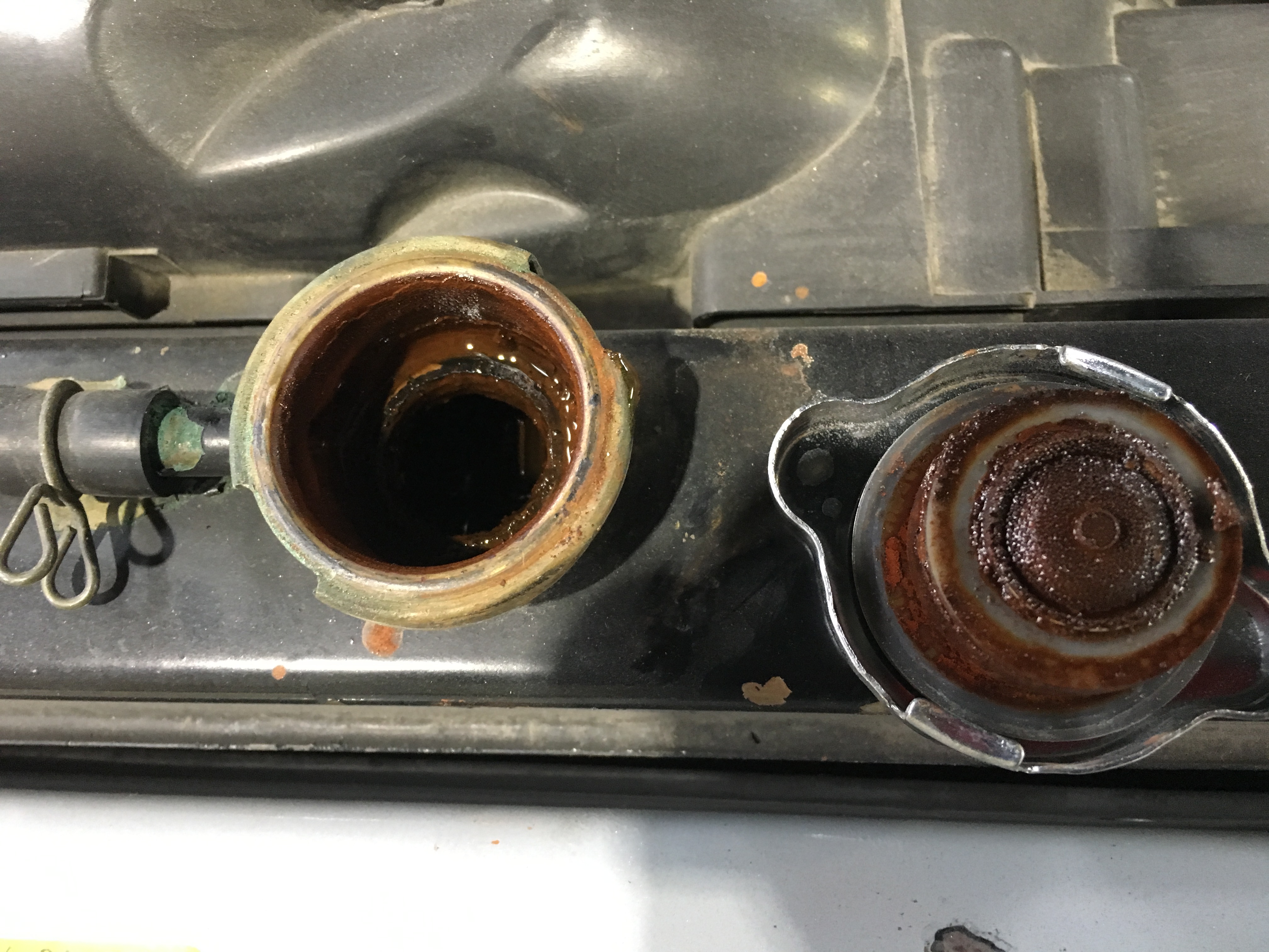 ラジエーターの水を抜いた時にラジエーターキャップ裏やラジエーター内部が目視出来ると思いますので、茶色くなっていないか?確認も必要ですね。