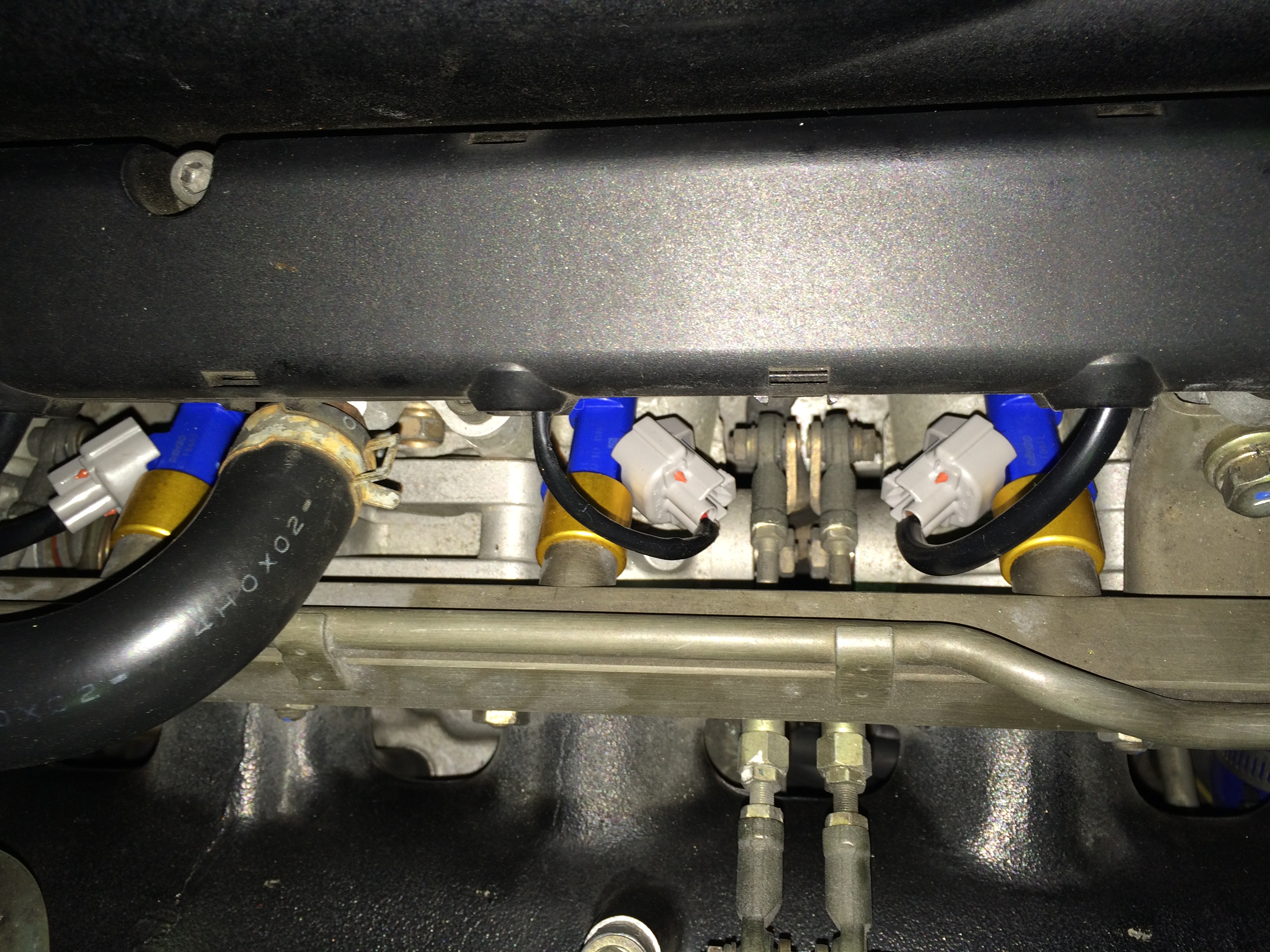 元々V型エンジンに使用されているために、インジェクターの位置はヘッドとインマニの間に挟まれ、インジェクターの取り付けるためのスペースが限られています。その為にインジェクターカプラーが当たらない縦方向に取り付けをします。