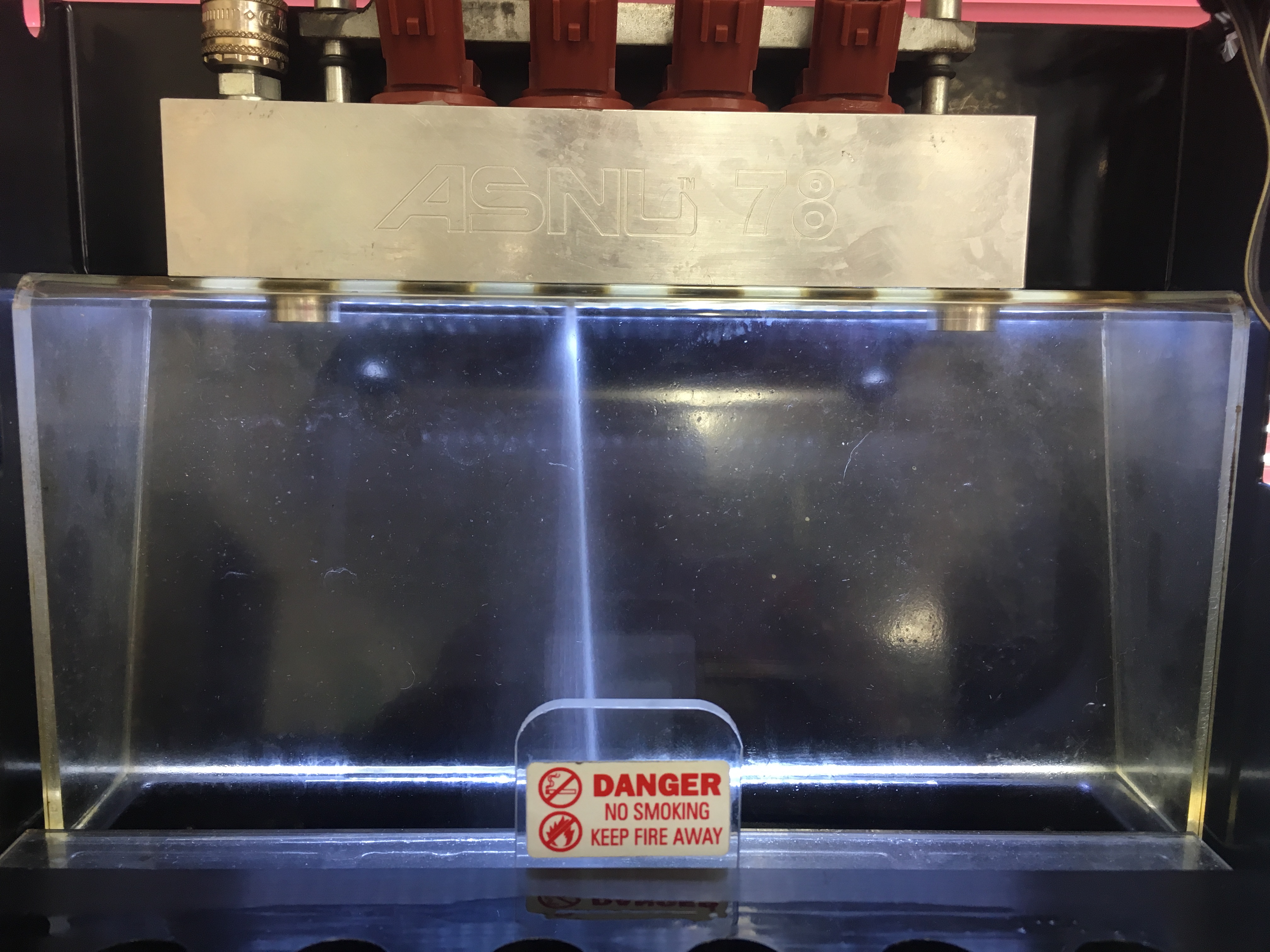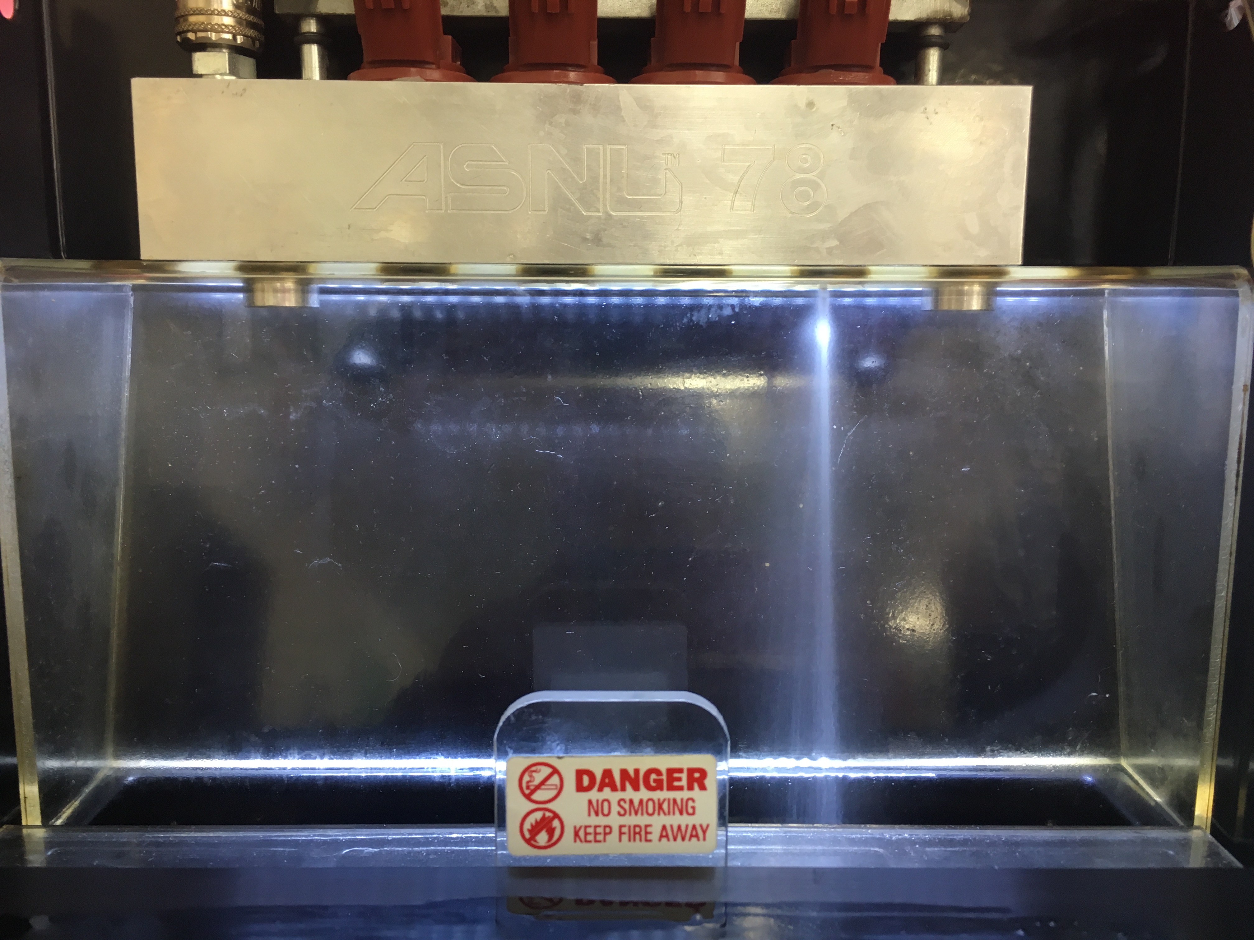 SRエンジンに使うサイドフィードタイプインジェクターの噴射状態です。