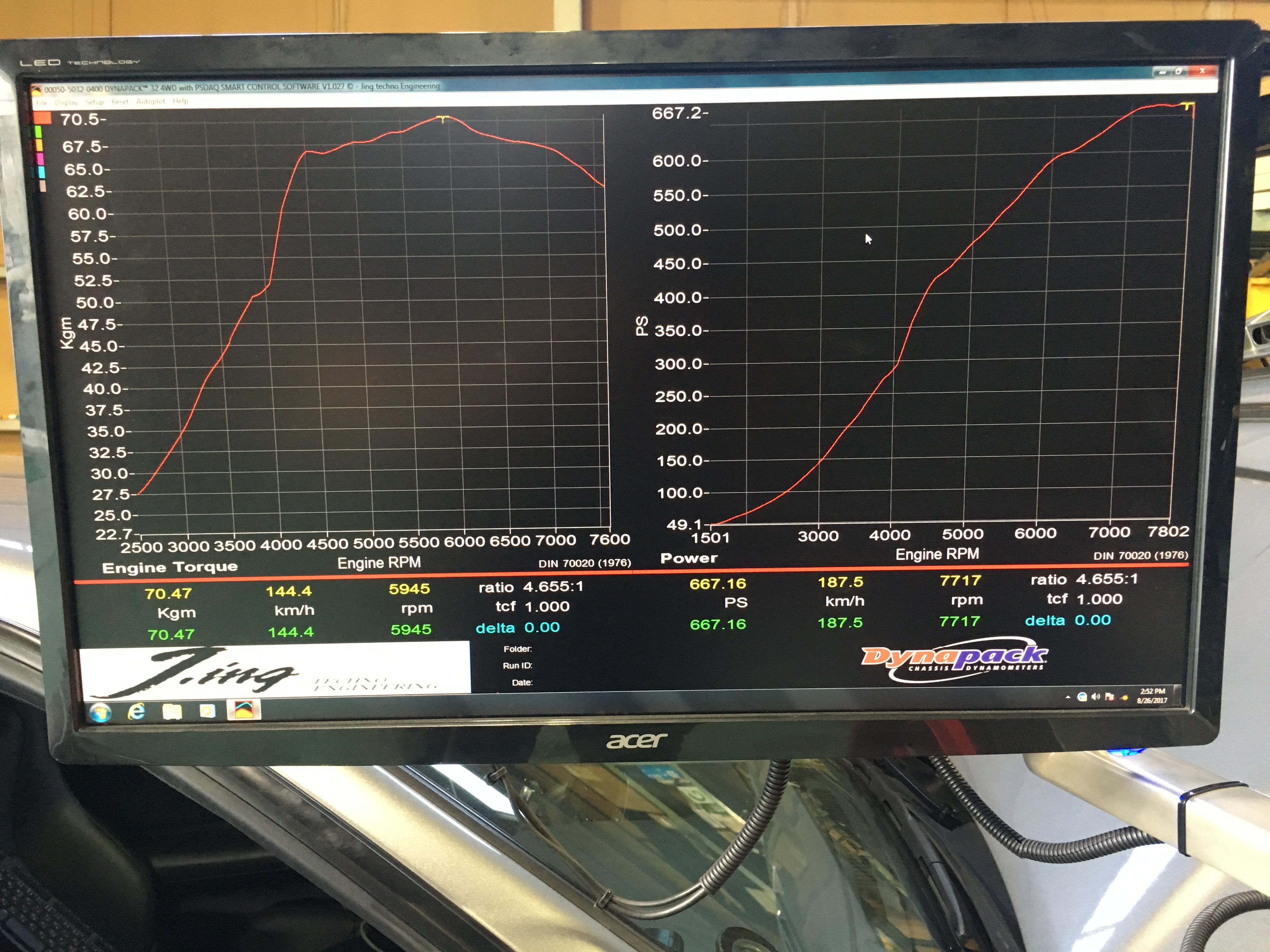 まだブーストも低く、点火も入れていない状態で668ps!回転も8000rpmまでシッカリ使えるのが特長です。