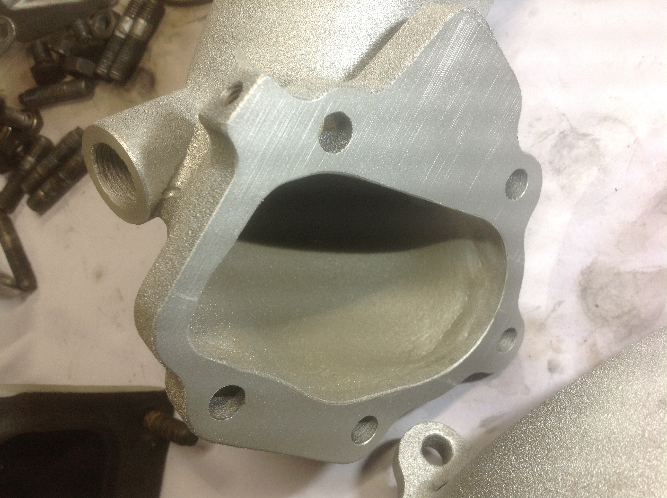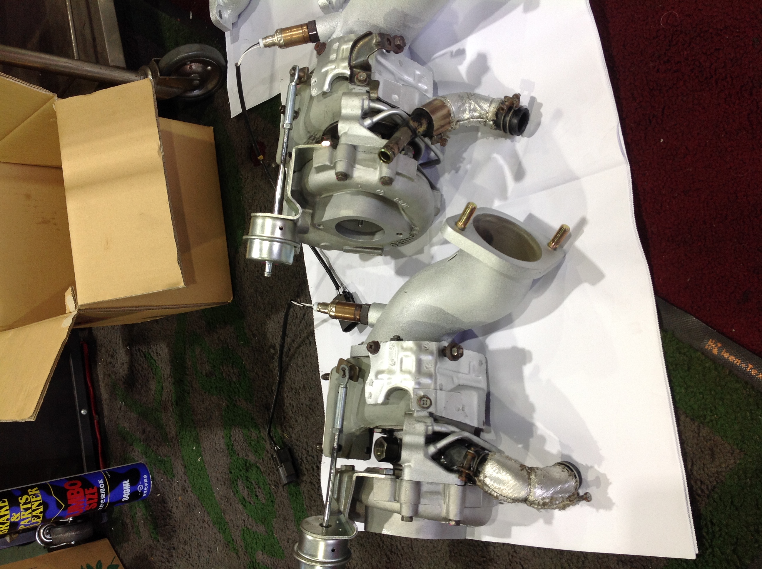 今回はアウトレットパイプも新品でしたので内部にもセラコートを施工し、フロントタービンの熱を遮断してリアコンプレッサーハウジングが熱くならないようにしました。