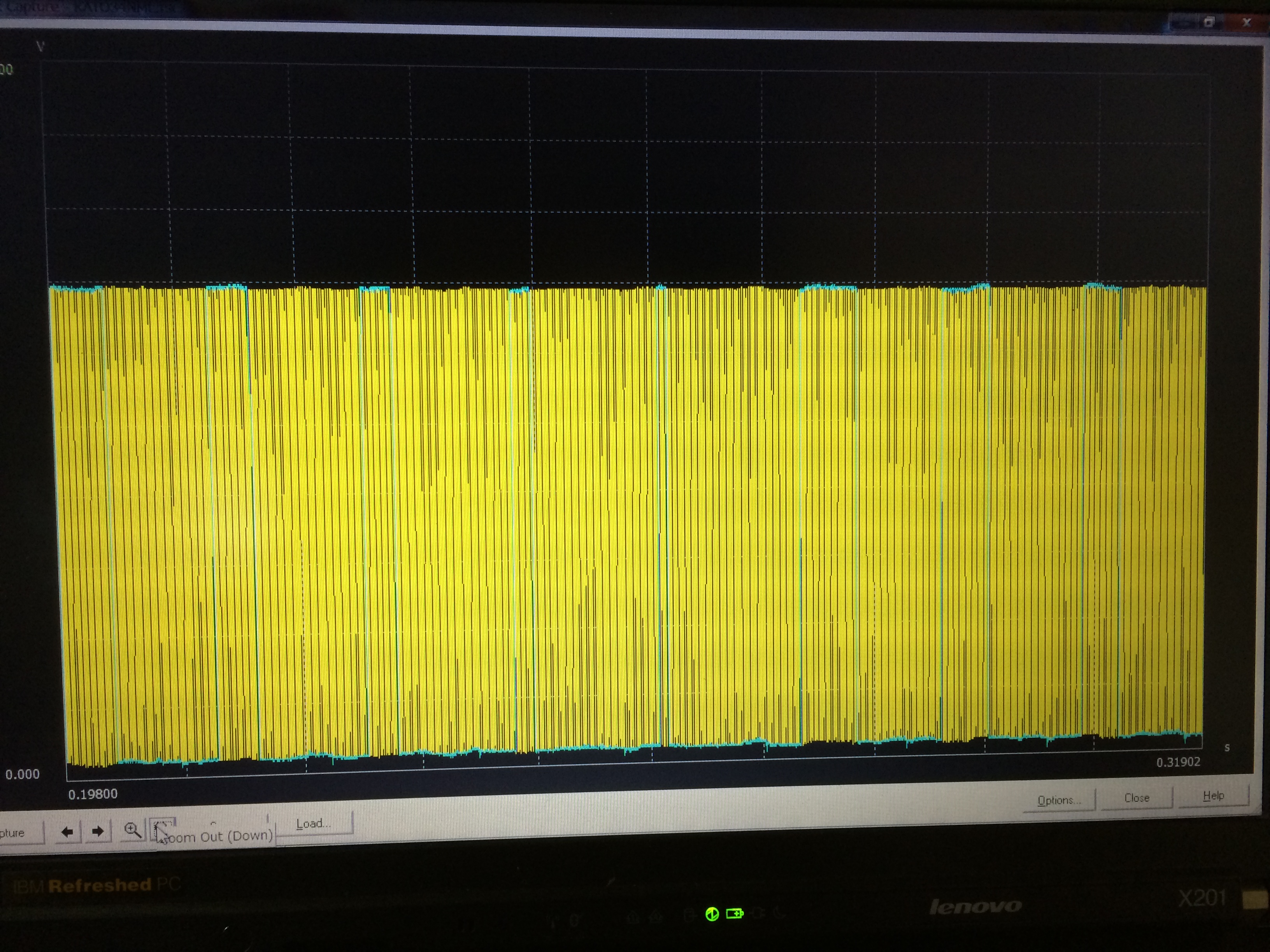 アイドリング時ですら、純正ECUや社外ECUでもエラーを起こしかねない波形の多さです。これが回転が4000rpm・5000rpm・6000rpmになるとタイミングベルトがブレて同時にクランク角センサーがブレますから、クランク角センサー内の306スリットもブレるのは当然!