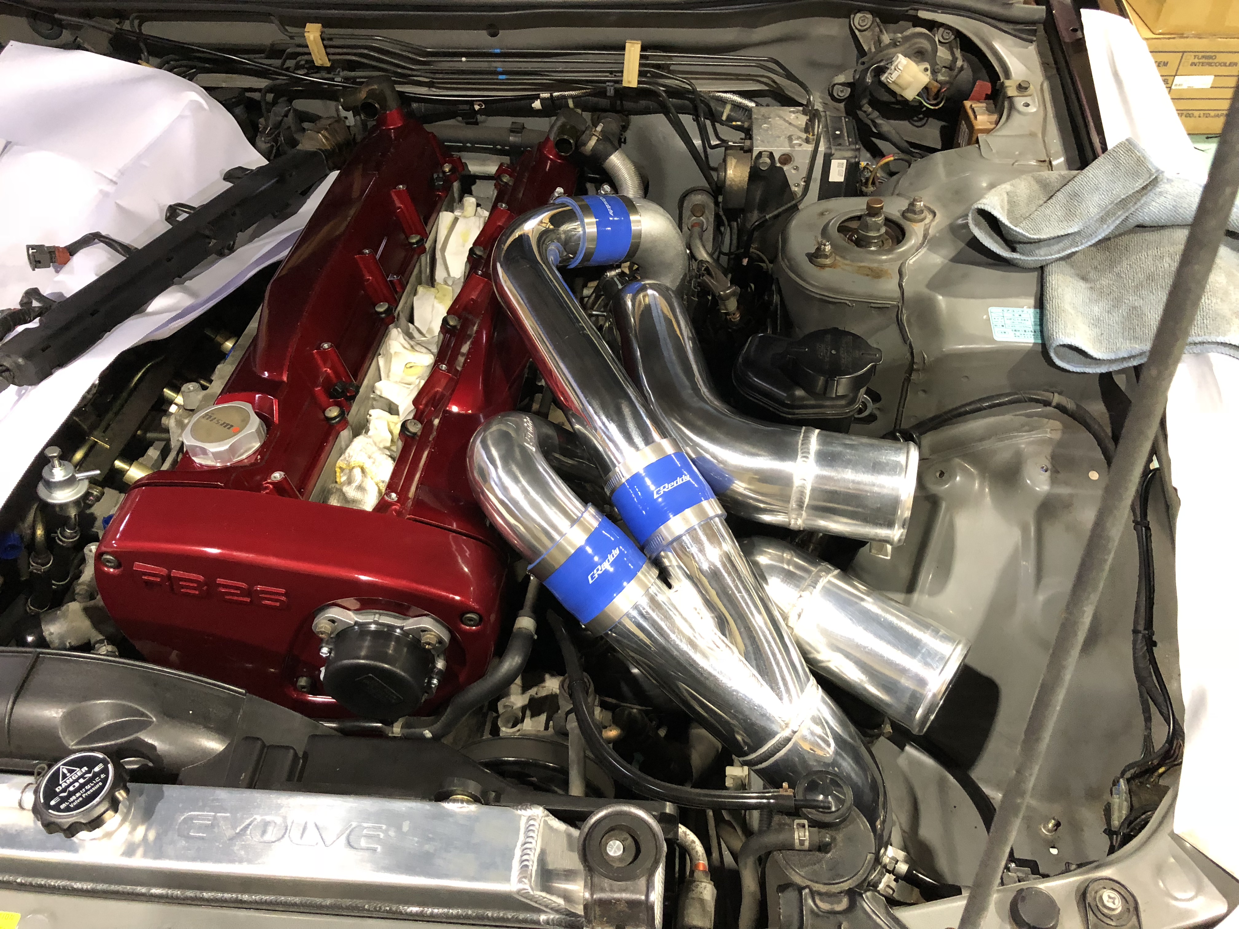 その際R32/R33/R34と同じものを使いますが、KITのまま使おうとするとパイプ同士が干渉したり、エンジンを掛けると当たる音がしたり、クリーナをベストな位置に設置出来なかったりします。