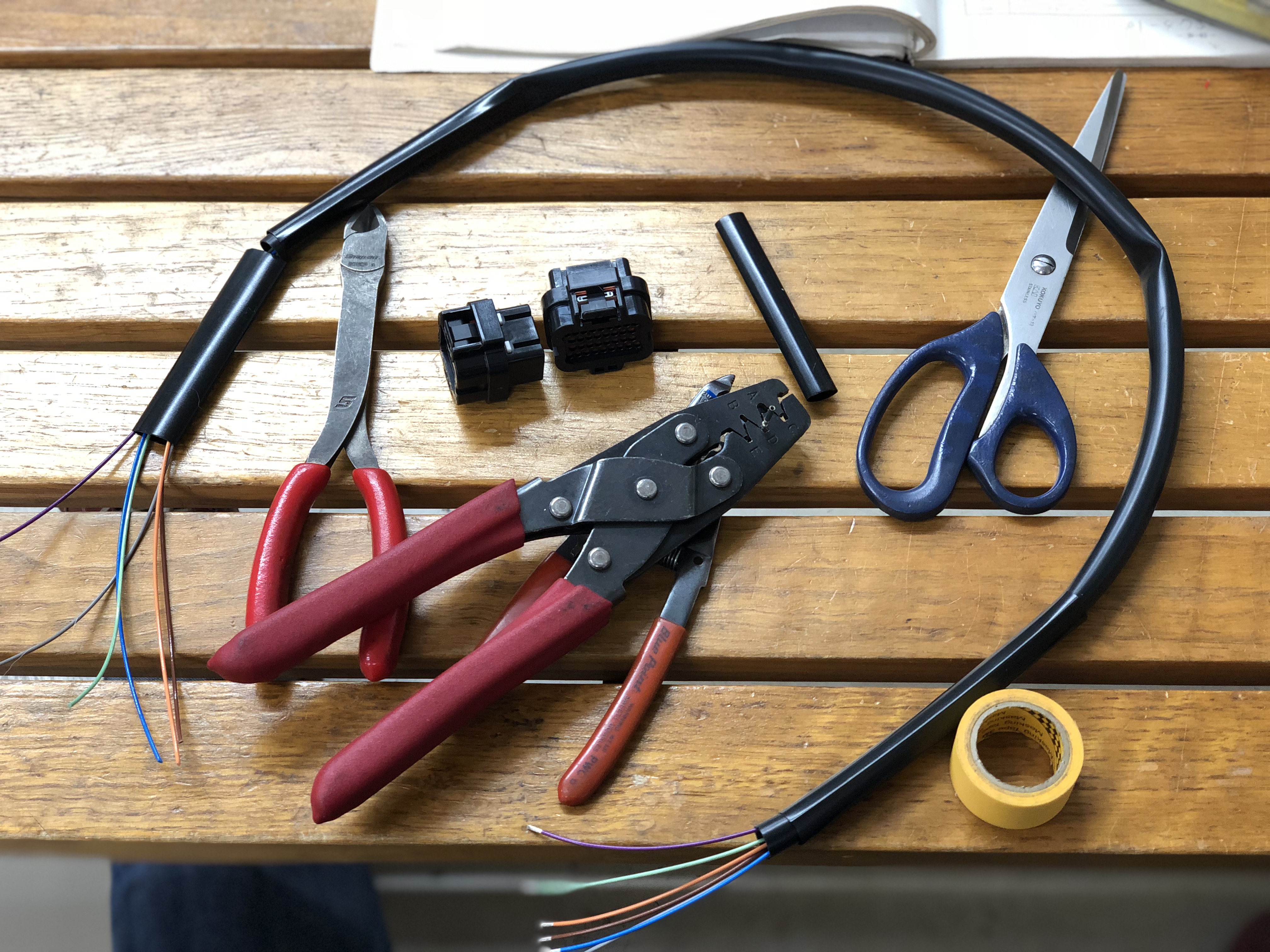 配線はクランク角センサーのRef&Sync信号から始まり、I/G・Boost・A/C・I/J・Ign・Lambda・pump・AAC・Knock・Throttle・EGTemp・Airtemp・etcと製作して行きます。