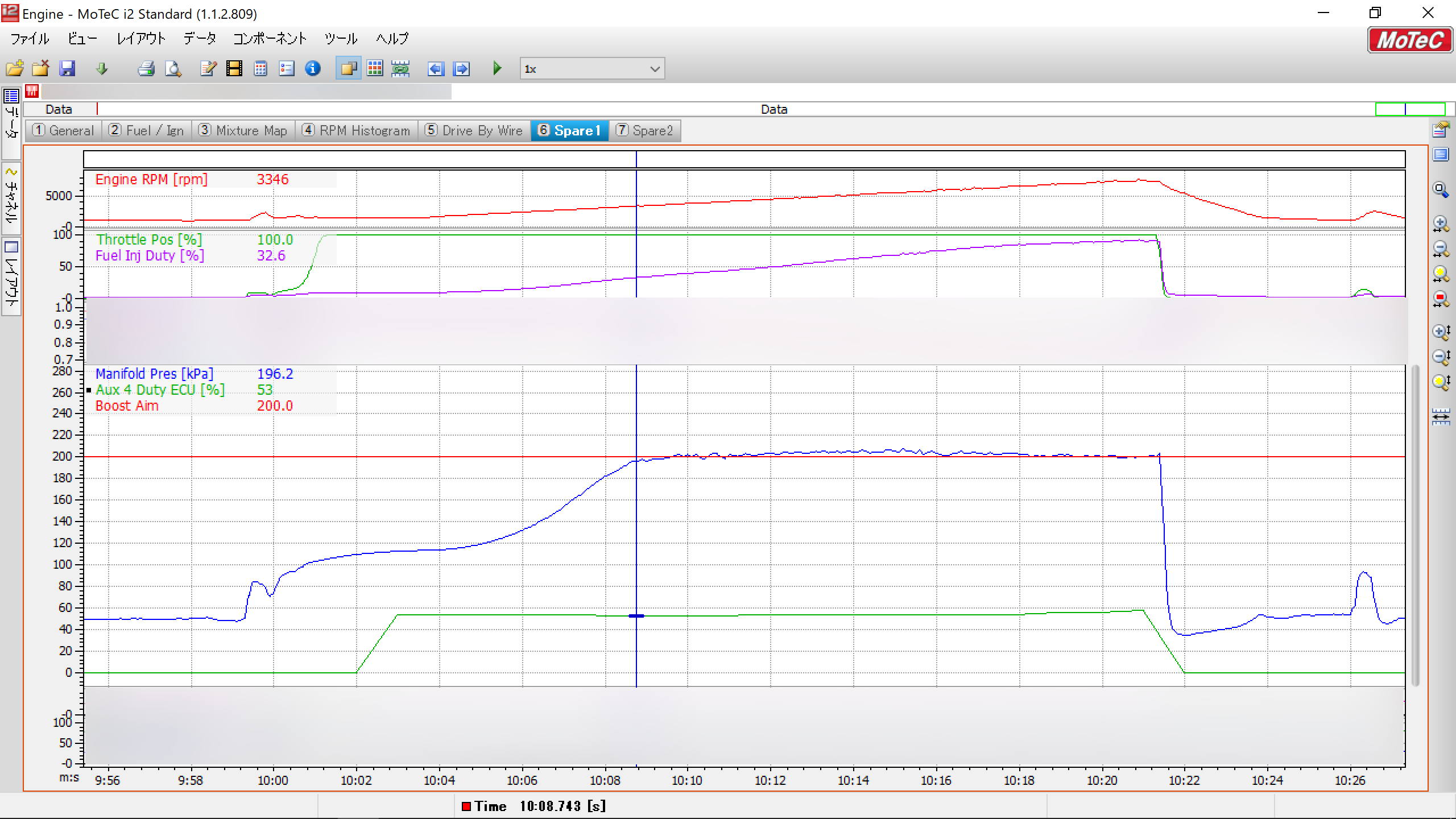 設定ブーストまでの立ち上がりを3300rpmを目標に調整したいな。