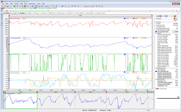 MoTeC、シミュレータ、ゲーム機などで作ることができる MoTeC 形式のログデータをデジスパイス解析ソフトで読込むことができます。デジスパイスで取得した実走行データと比較することができます。