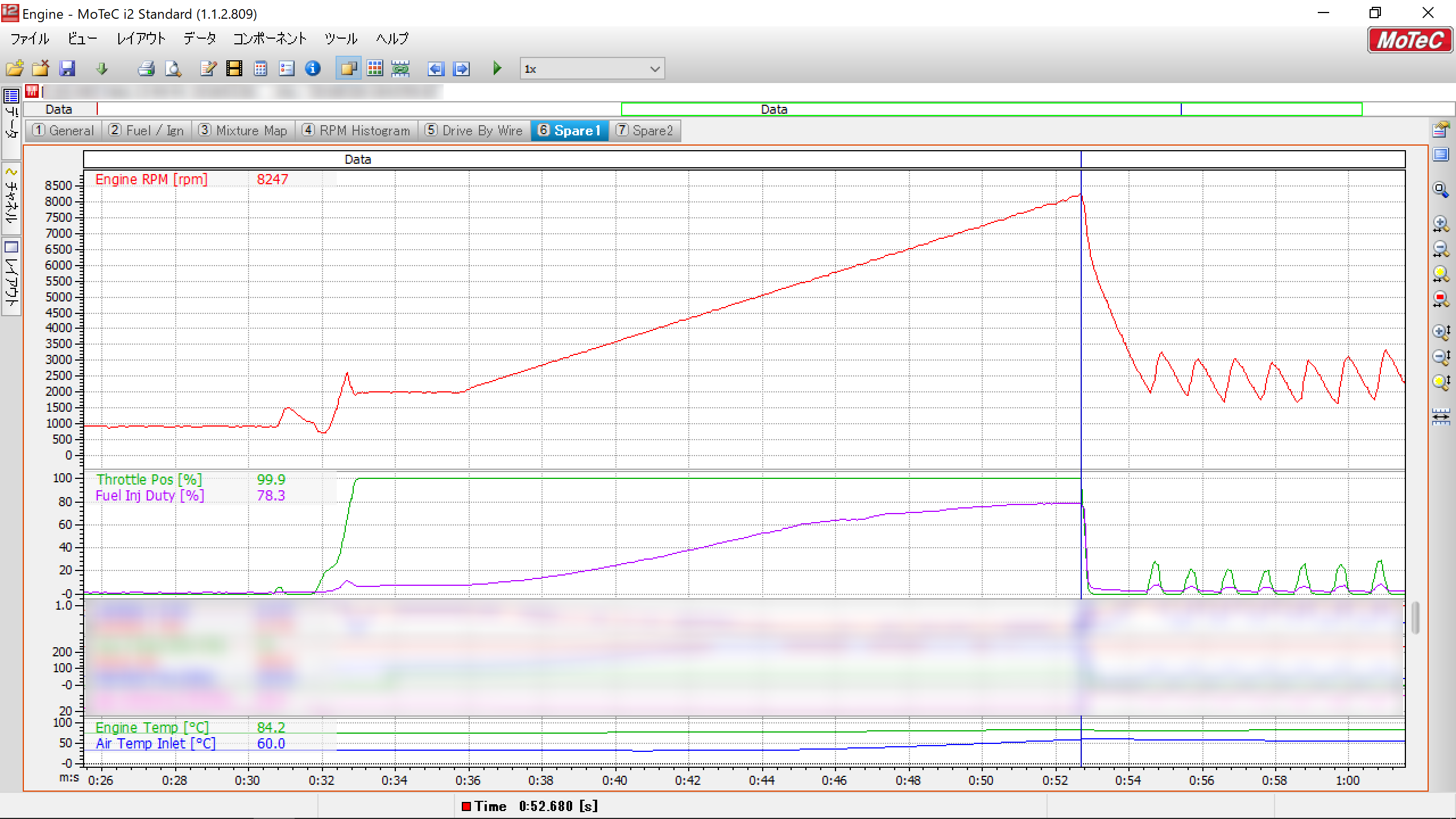 ECUをMoTeCに変えただけではここまで使えるようにはなりません。良くはなりますが・・・そこで出力信号を改造し、その信号が正確に認識出来るようにMoTeCでセットアップして初めてここに辿り着きます。