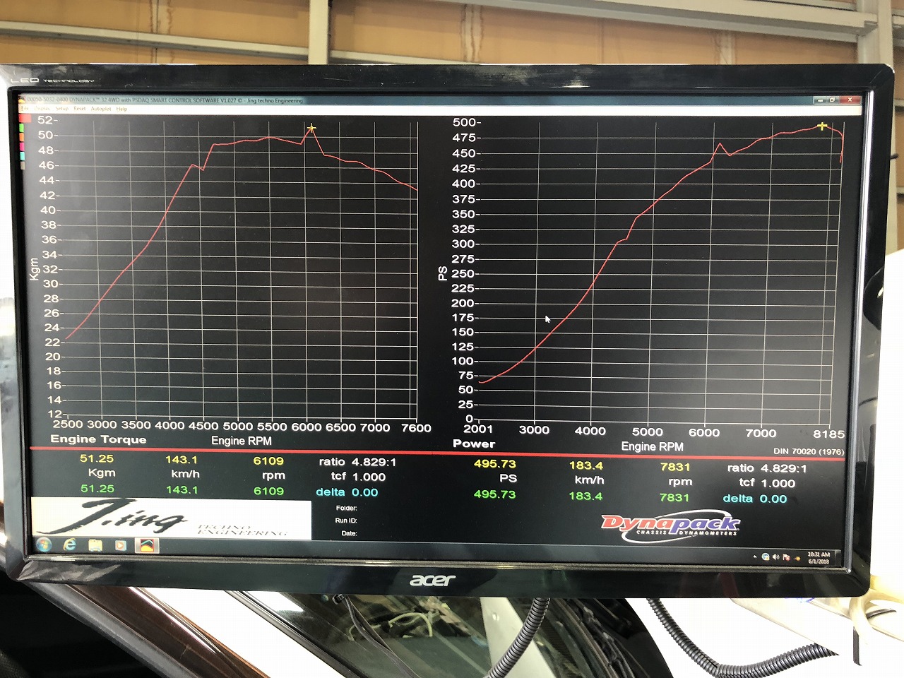 結果は7831rpmがピークになりました。馬力も出ちゃいましたね💦