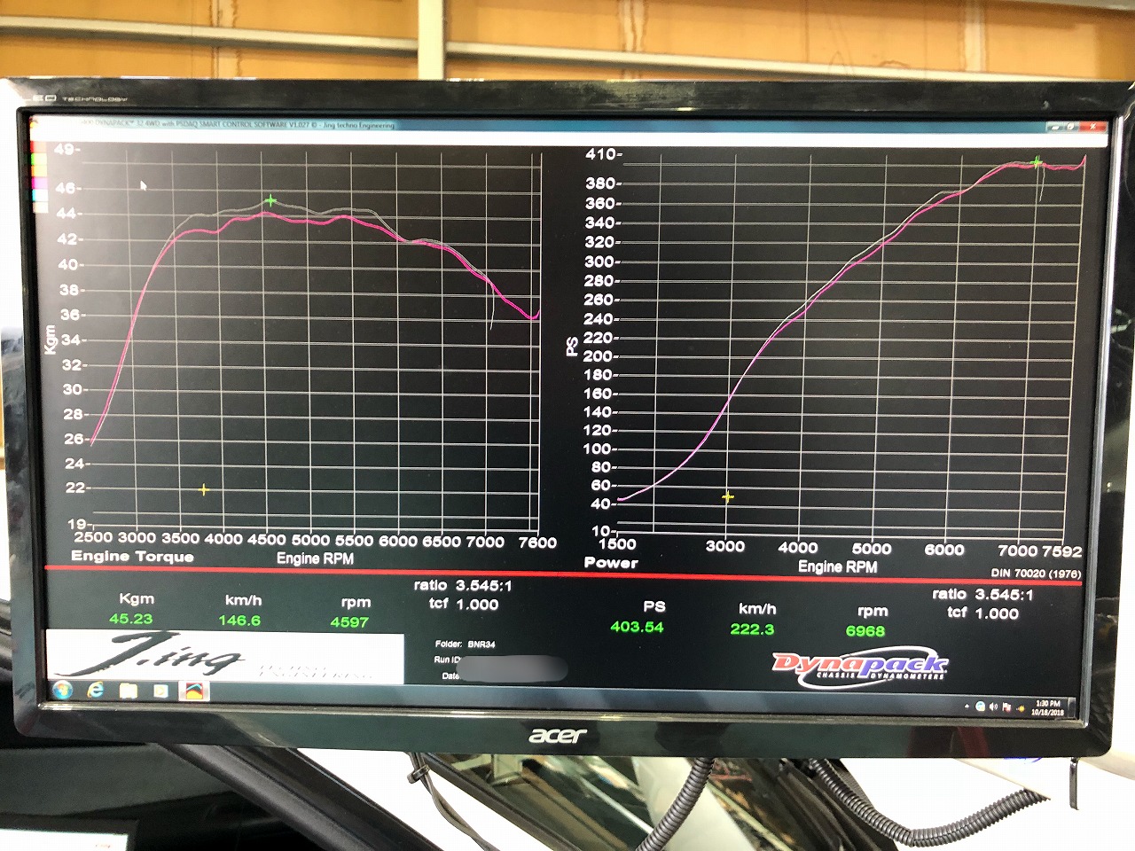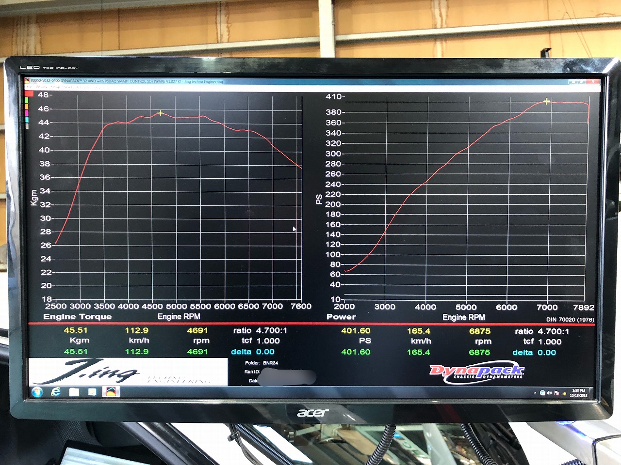 DynaPackはグラフを描く時に、回転毎にエンジンが回ろうとするのを抑え込み、その時の回転数の負荷を計測しているんですよ。