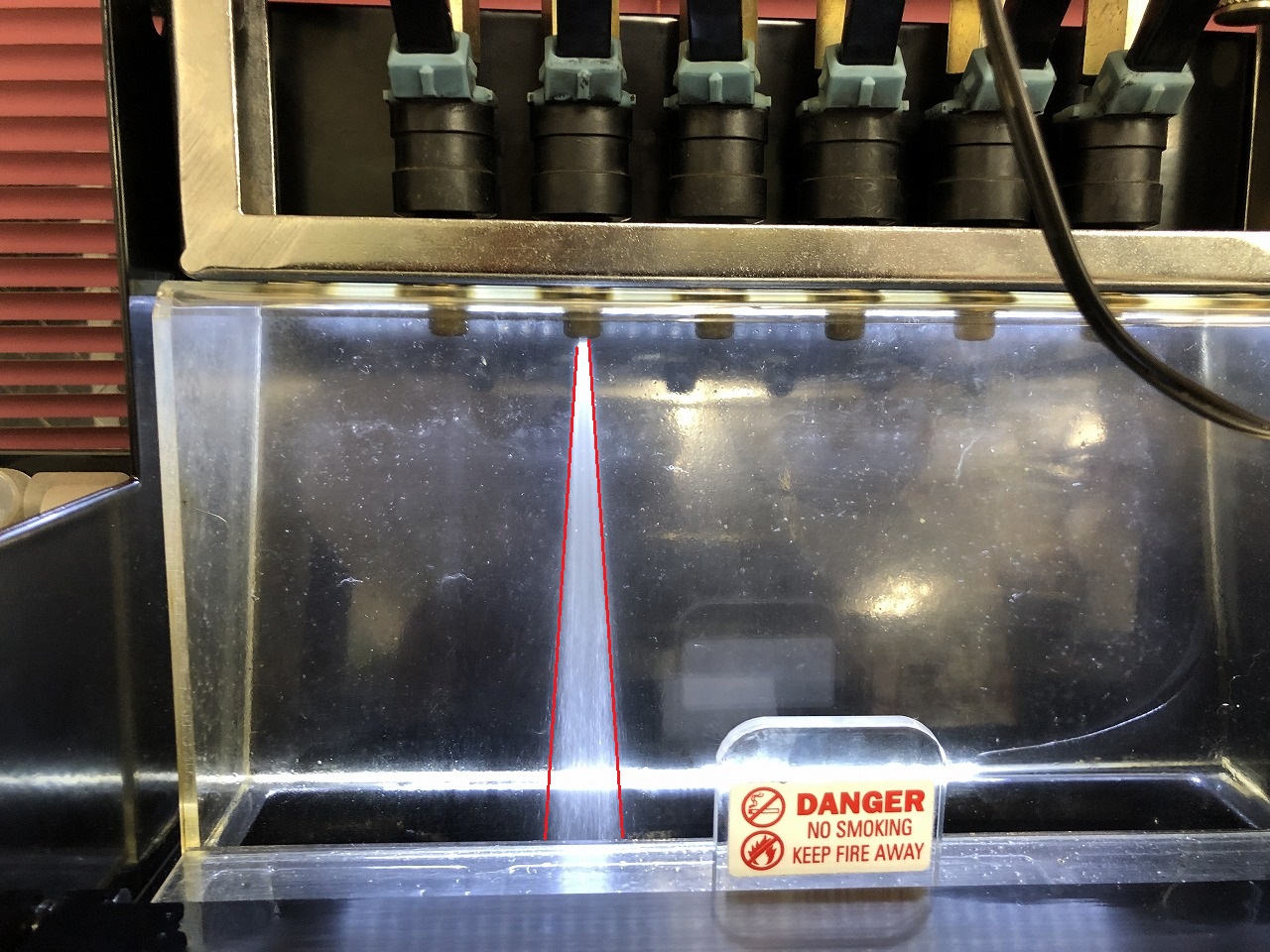 噴射角度は燃圧3.0kで25°くらいでした。燃圧2.5kで18°から20°くらいかな。燃圧2.0kで10°と使えない状態