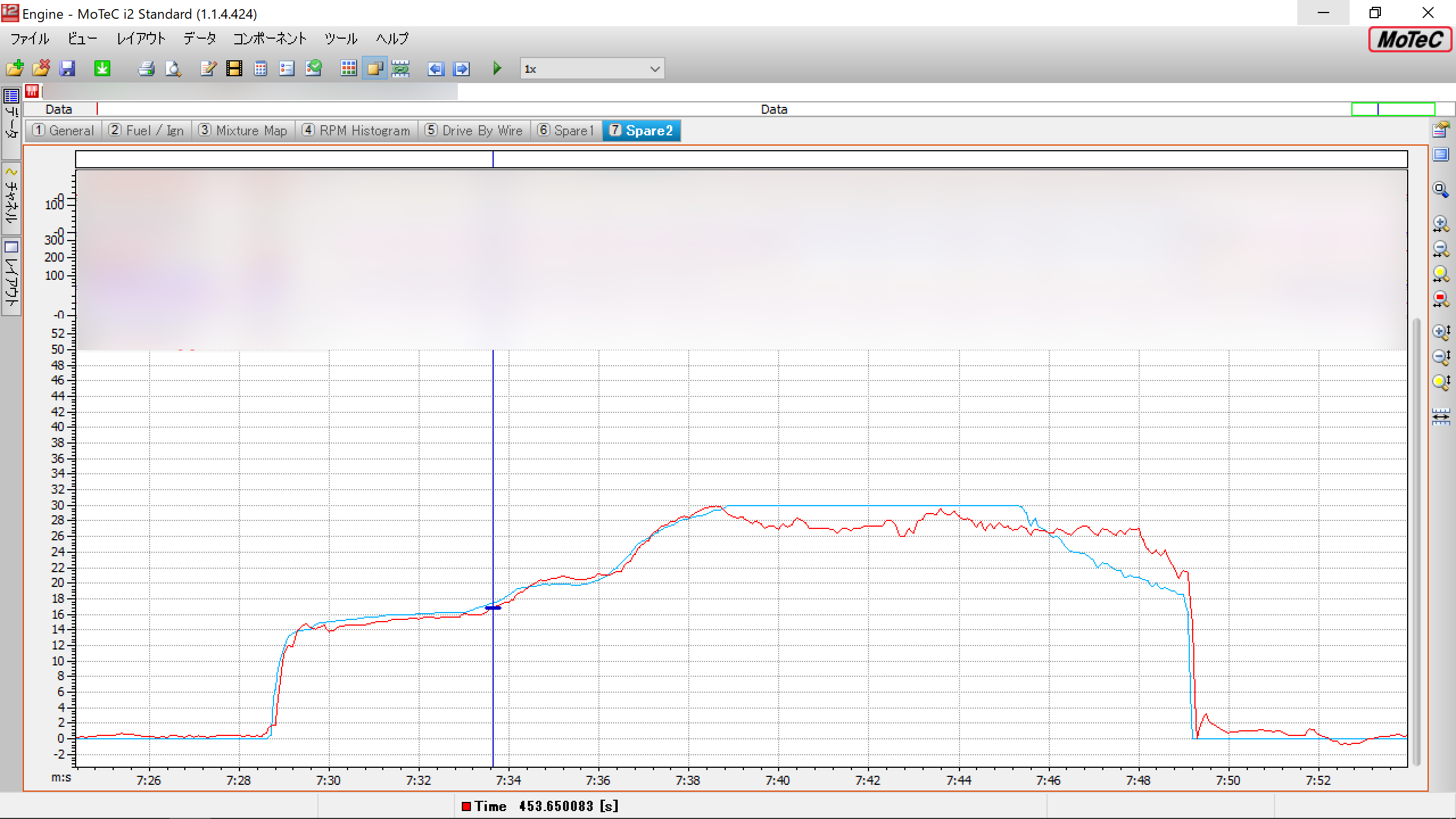 V-CAMをMoTeCにてコントロールしたわけですが、可変プーリーが壊れているようで、グラフの様な動きをしました。