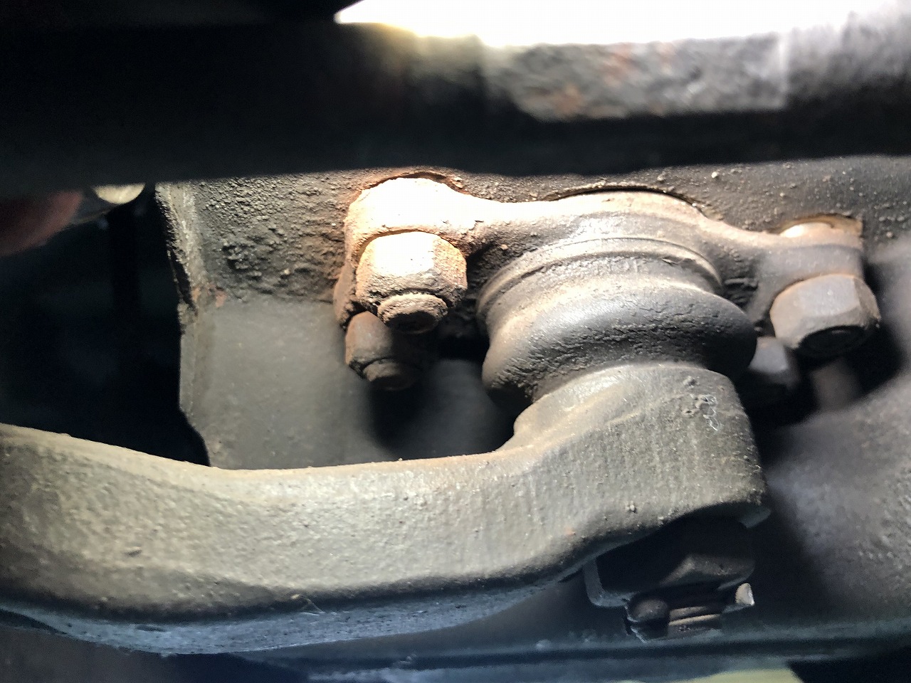 もう一つフロントハブベアリングのガタと言う事で点検するとロアボールジョイントブラケットのナットが4本緩み脱落手前の状態。