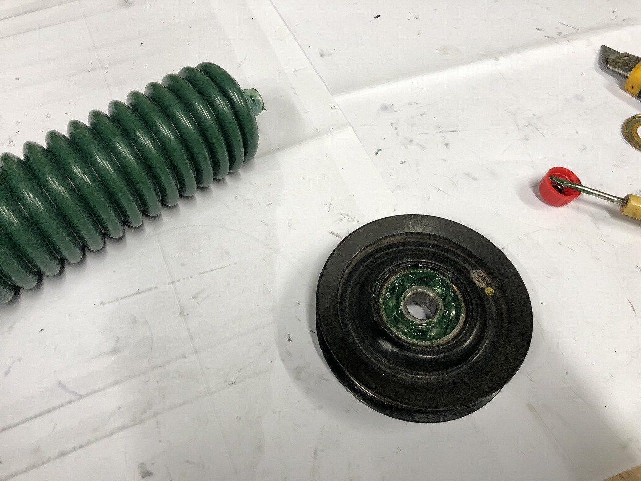同じようにアイドラプーリーやテンショナープーリーの新品を分解してMoty'sグリースに交換する事で耐久性向上とベアリングの静音に役立ちます。