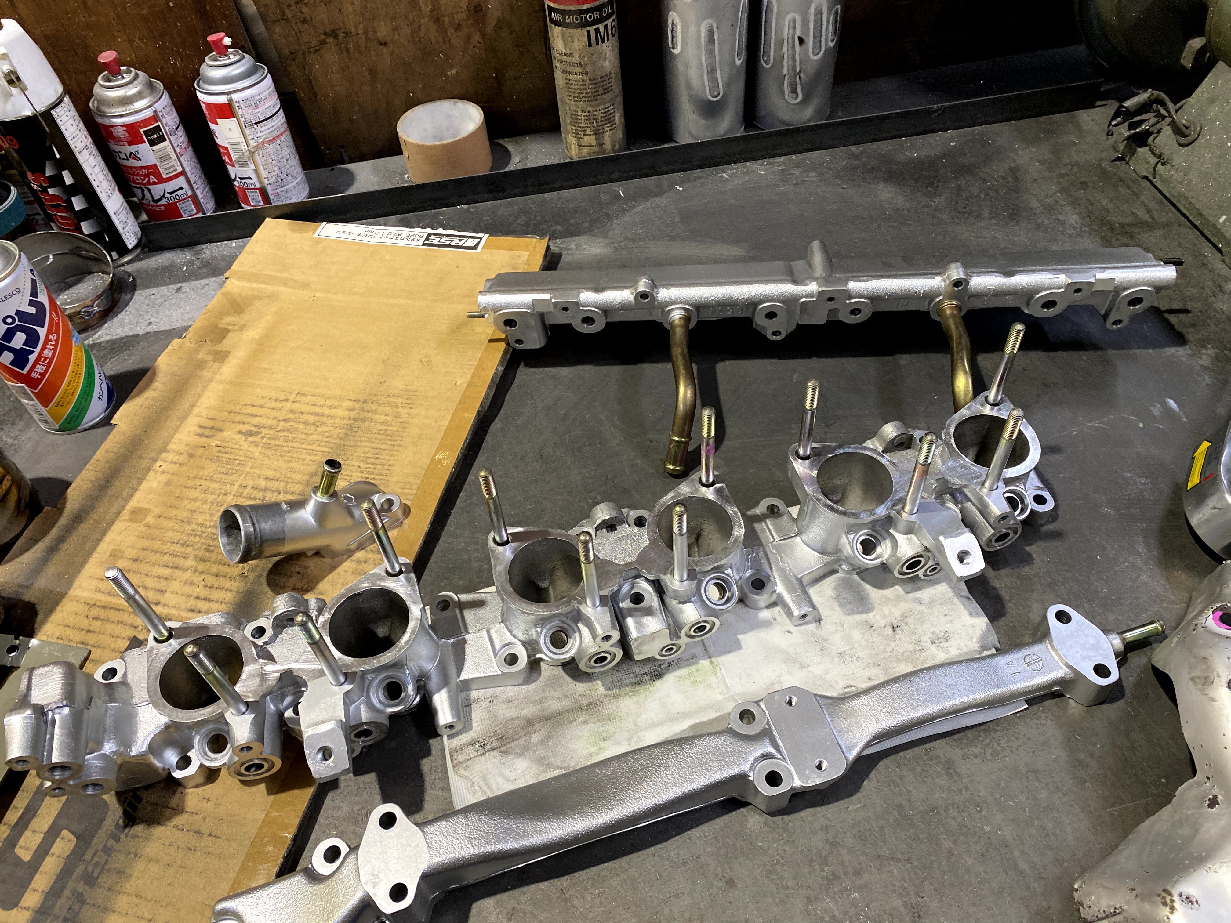 最後にコーティング剤が乾いたらスロットル個別にバタフライの全閉を調整し、マニホールドに取り付けします。
