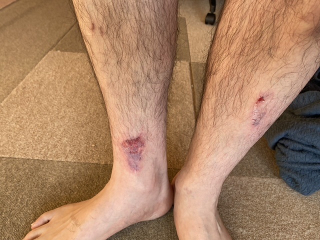 寒くて何処を打ち付けたか分からない状態でしたが、左右のスネの辺りが痛いことは確かです。
