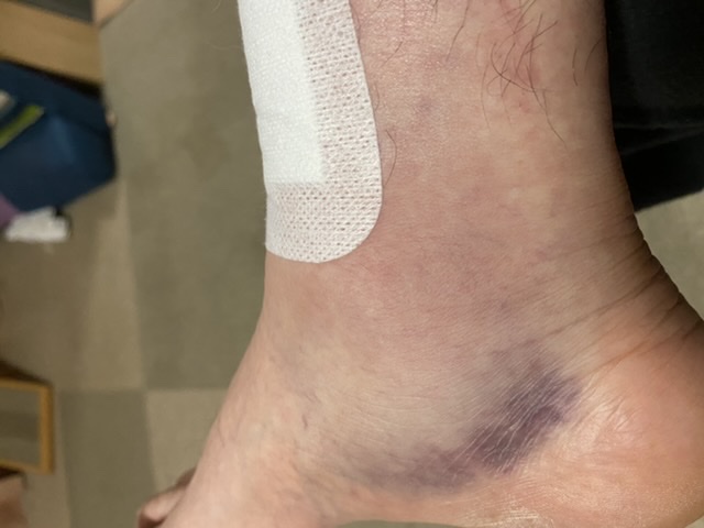 皮下出血と打撲と左足骨にヒビだって(笑)