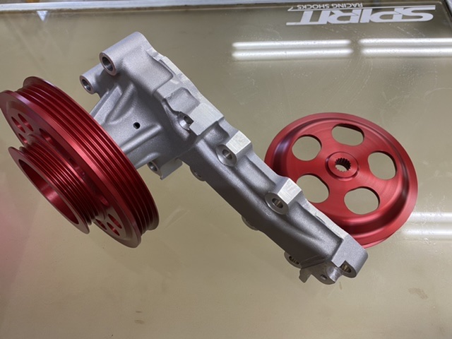 但し通常の製品ですとウォーターポンプ本体のベアリングやシャフトやケース本体の強度不足が出てしまいますので、このGr.Aウォーターポンプはケースまで型を起こして作ってあります。