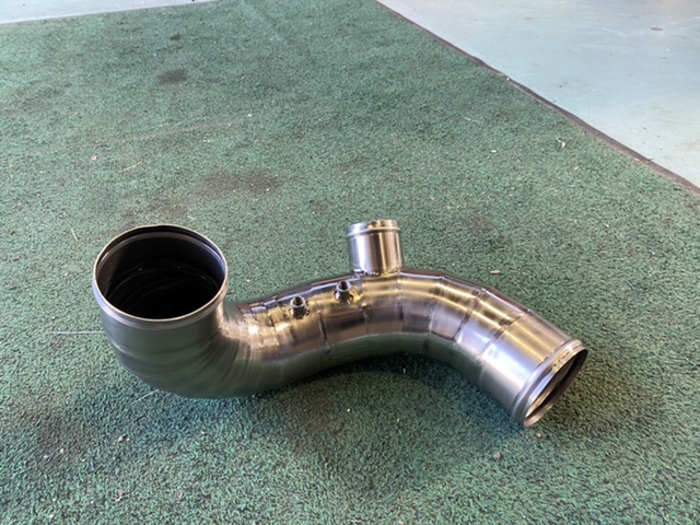 フランジで作ればチタンフランジの肉厚が薄く、エアー漏れの原因になるでしょうから、悩んだ末にΦ50のパイプにしました。