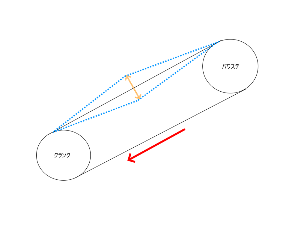 クランクが主軸となりパワステプーリーまでのスパン長の中央におけるたわみの量を測定