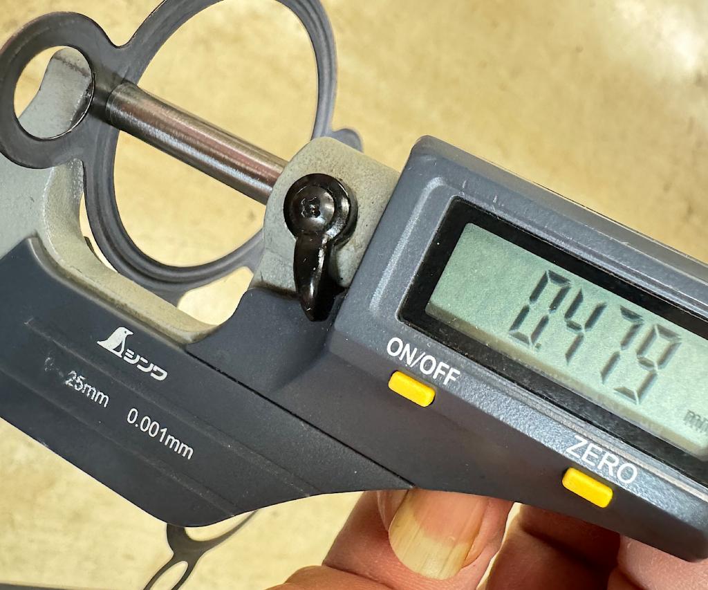 最後に実際に取り付け、1ヶ月後に外したガスケットの厚みを測定