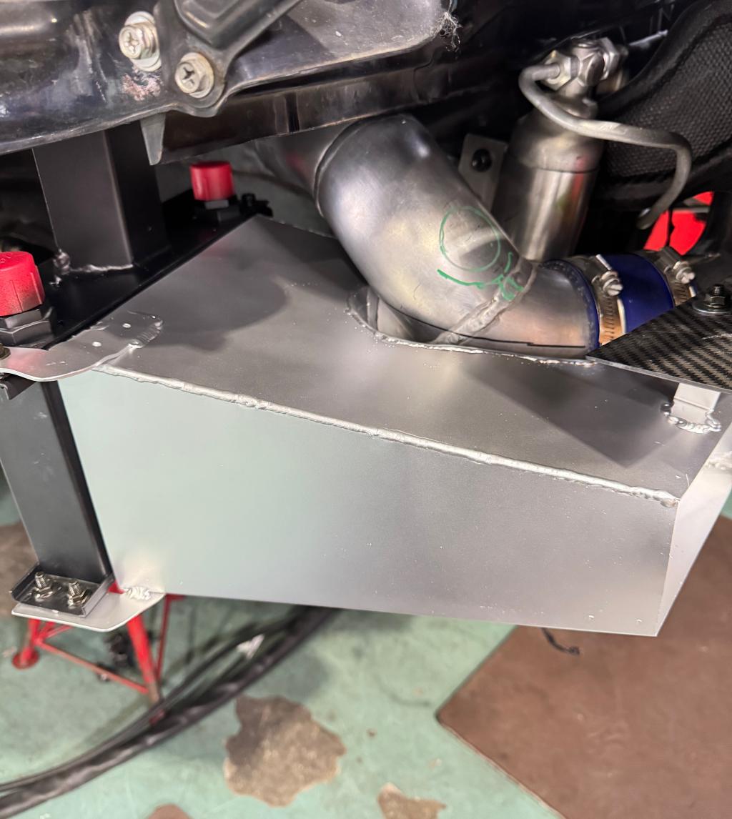 インタークーラーのパイピングが邪魔で導風板はパイピングを逃げながらの製作