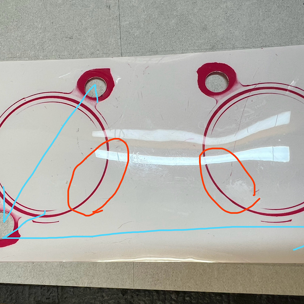 感圧紙(圧力測定フィルム)を使用した検証では
