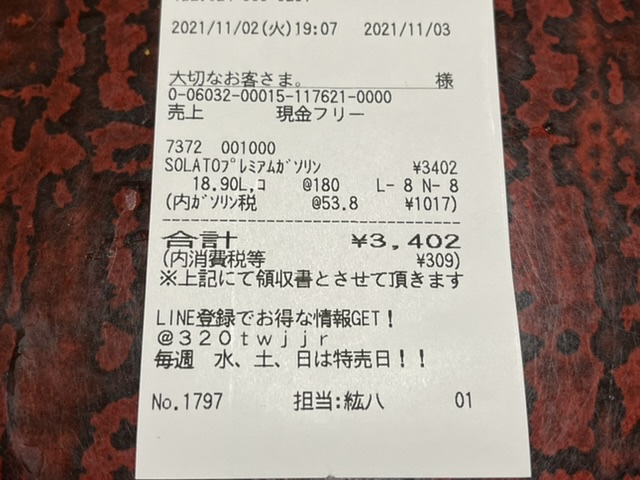 265/40R18 という純正より外径の大きい変わり種サイズを履いてるので、もう少し燃費が良いはずです。