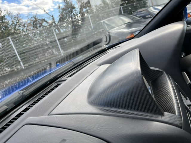 →艶消しでカーボンファイバーの模様を出そうとすると、このドライカーボンしかありません。ウエットカーボンでは、クリア塗装を施す為、光が反射し、フロントガラスに映り込んでしまいます。