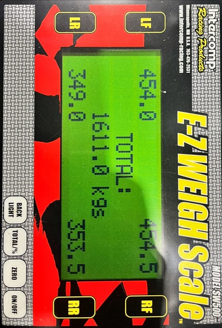4輪の接地荷重から車高調整をしていきます。