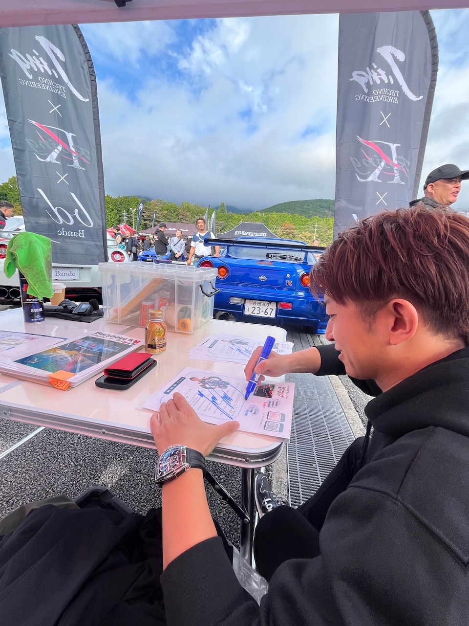 ということで、今年は同じくフルプロテクションしたR34 GT-Rのボンネットに平手晃平選手に傷を入れてもらい、耐久性を実証するデモンストレーションも行いました👍