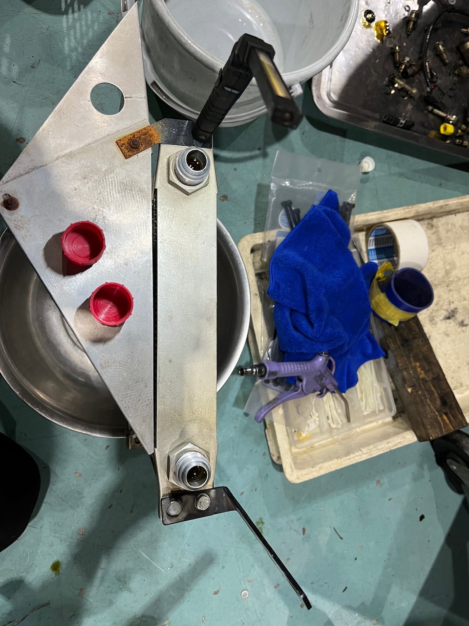 僕の方ではオイルクーラーの洗浄をしています。